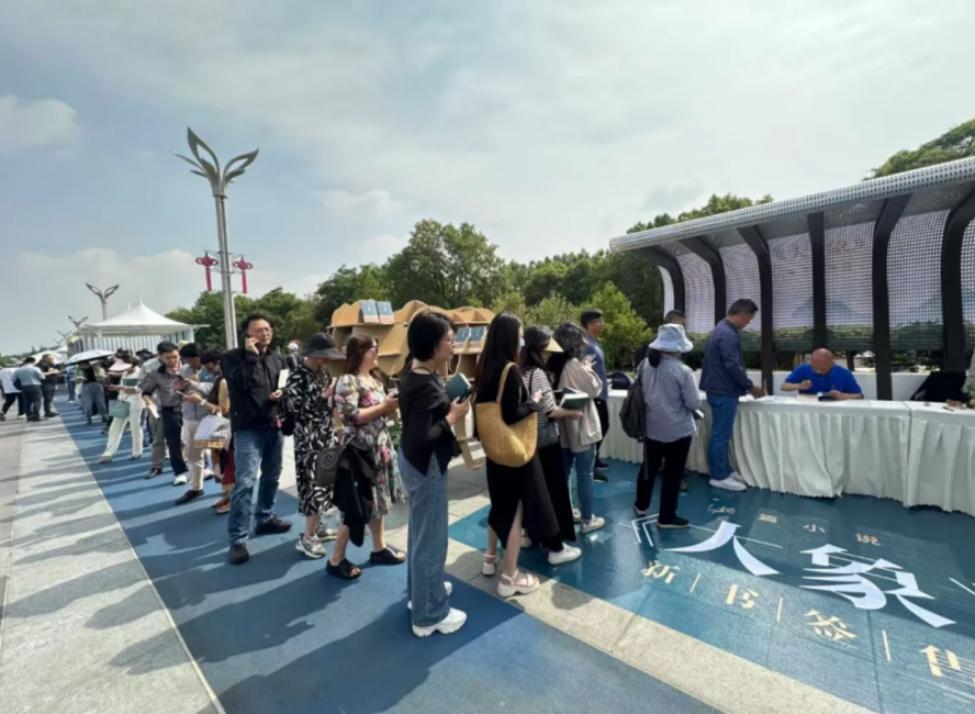 Readers line up at the book signing event for "The Elephants." [Photo/CICG]