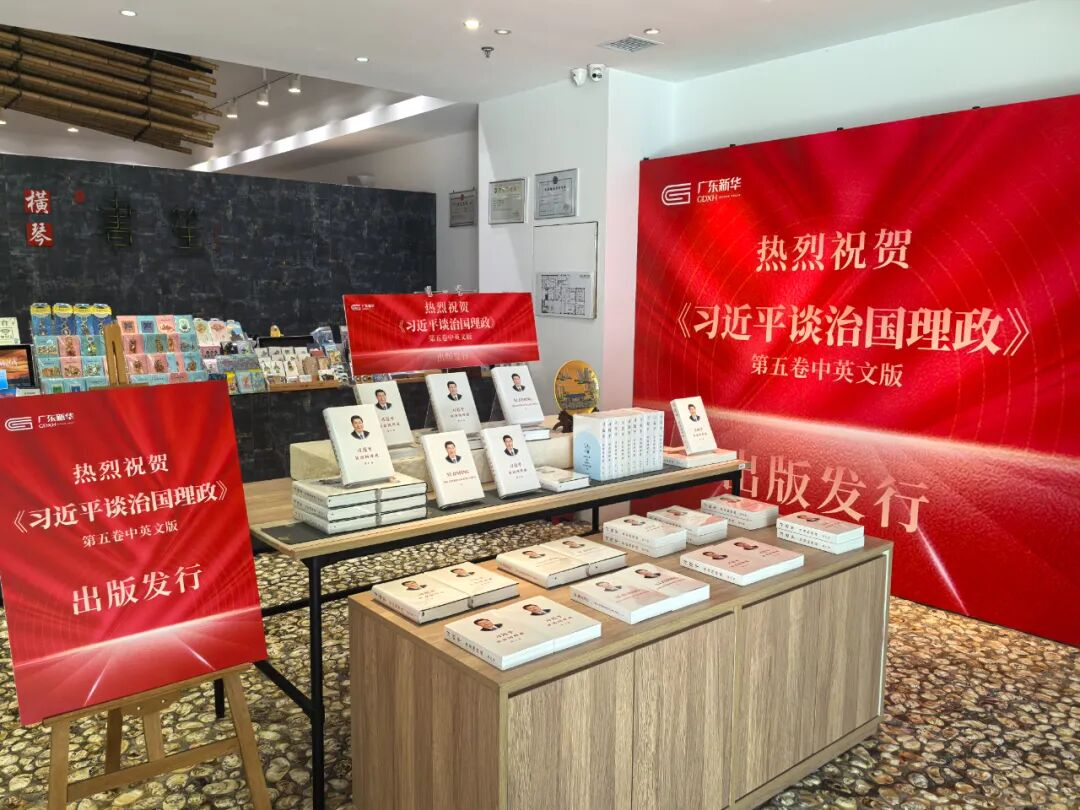 The fifth volume of "Xi Jinping: The Governance of China" is available at Shenzhen Book Mall Nanshan Branch in Shenzhen, Guangdong province, in August 2025. [Photo/CICG]