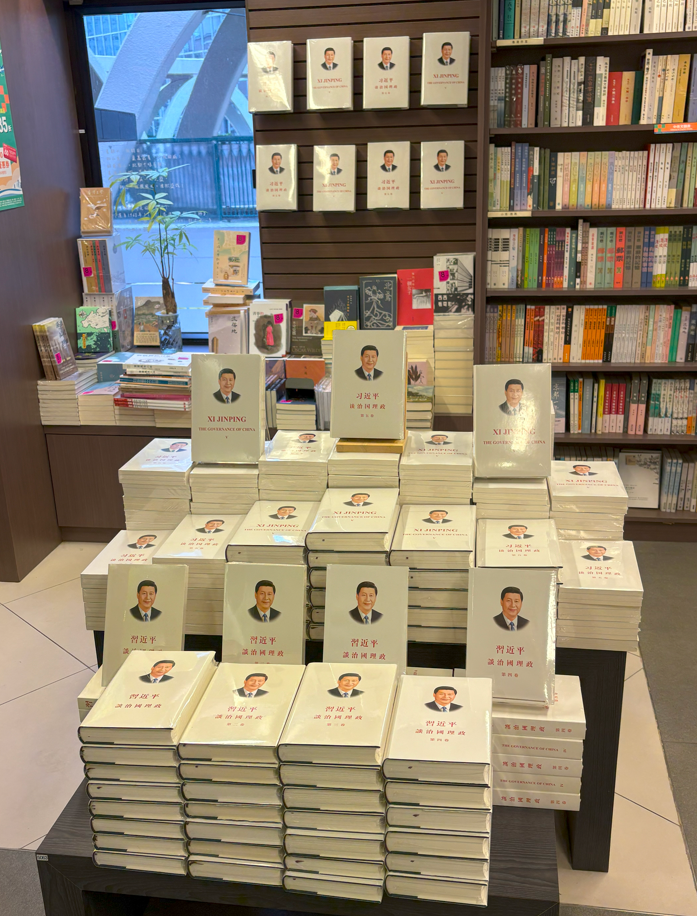 The fifth volume of "Xi Jinping: The Governance of China" is available at JP Books (Central) in Hong Kong in August 2025. [Photo/CICG]
