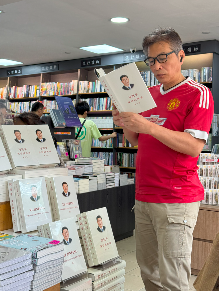The fifth volume of "Xi Jinping: The Governance of China" is available at The Commercial Press Bookstore (Causeway Bay) in Hong Kong in August 2025. [Photo/CICG]