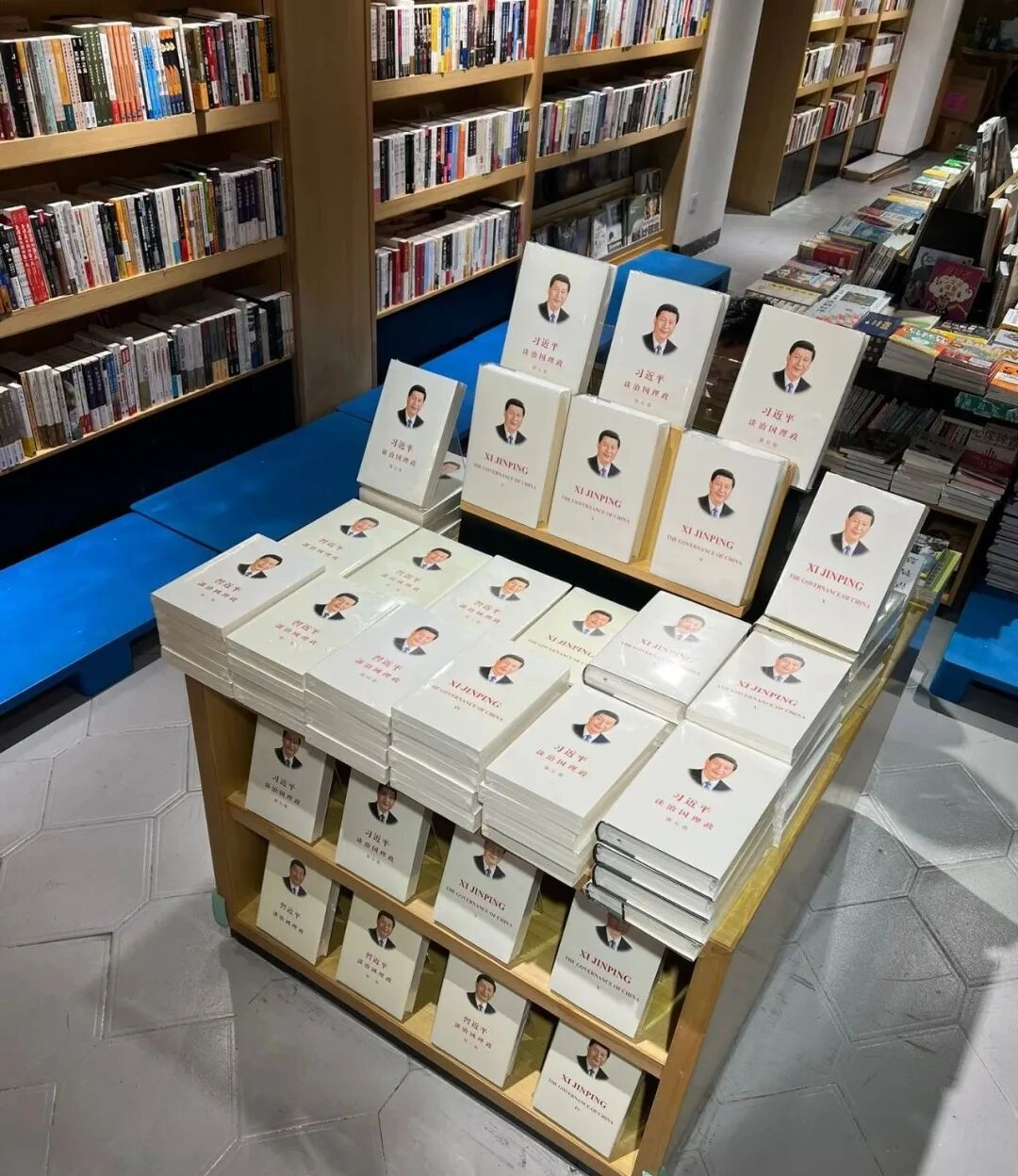 The fifth volume of "Xi Jinping: The Governance of China" is available at Livraria Seng Kwong Bookstore in Macao in August 2025. [Photo/CICG]