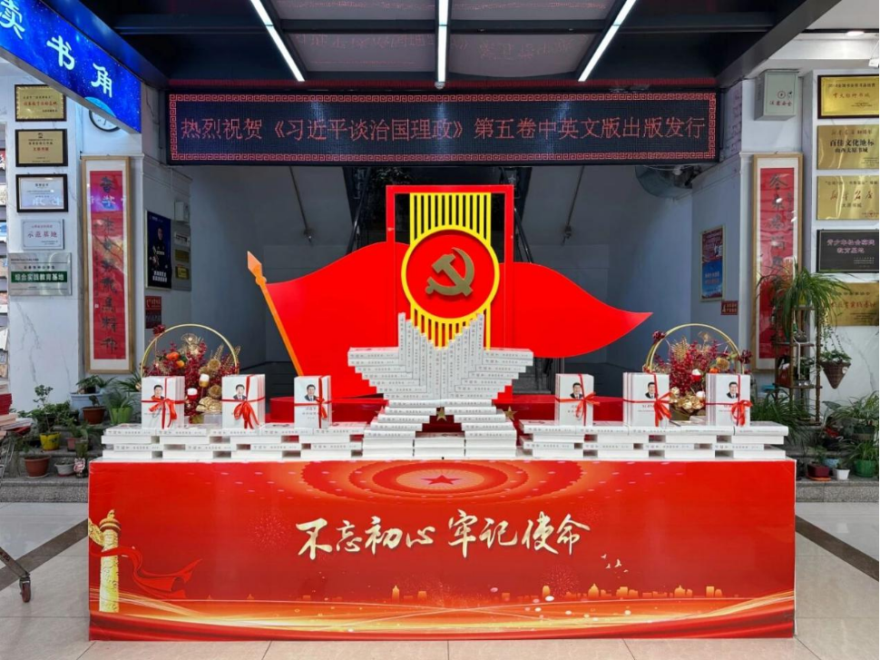 The fifth volume of "Xi Jinping: The Governance of China" is available at Taiyuan Book City in Taiyuan, Shanxi province, in August 2025. [Photo/CICG]