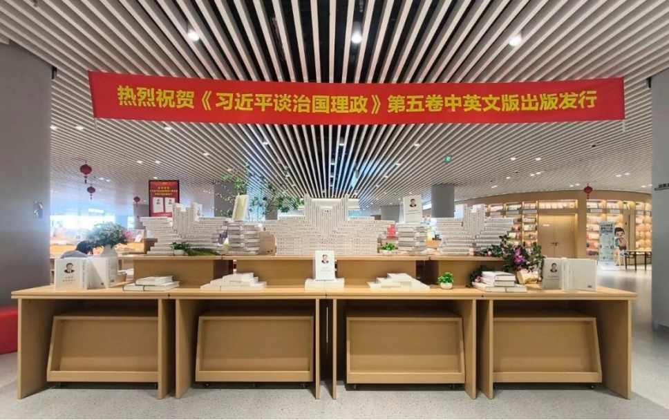 The fifth volume of "Xi Jinping: The Governance of China" is available at Chang'an Academy in Xi'an, Shaanxi province, in August 2025. [Photo/CICG]