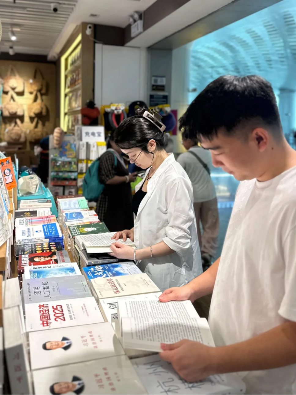The fifth volume of "Xi Jinping: The Governance of China" is available at a bookstore at Hangzhou International Airport in August 2025. [Photo/CICG]