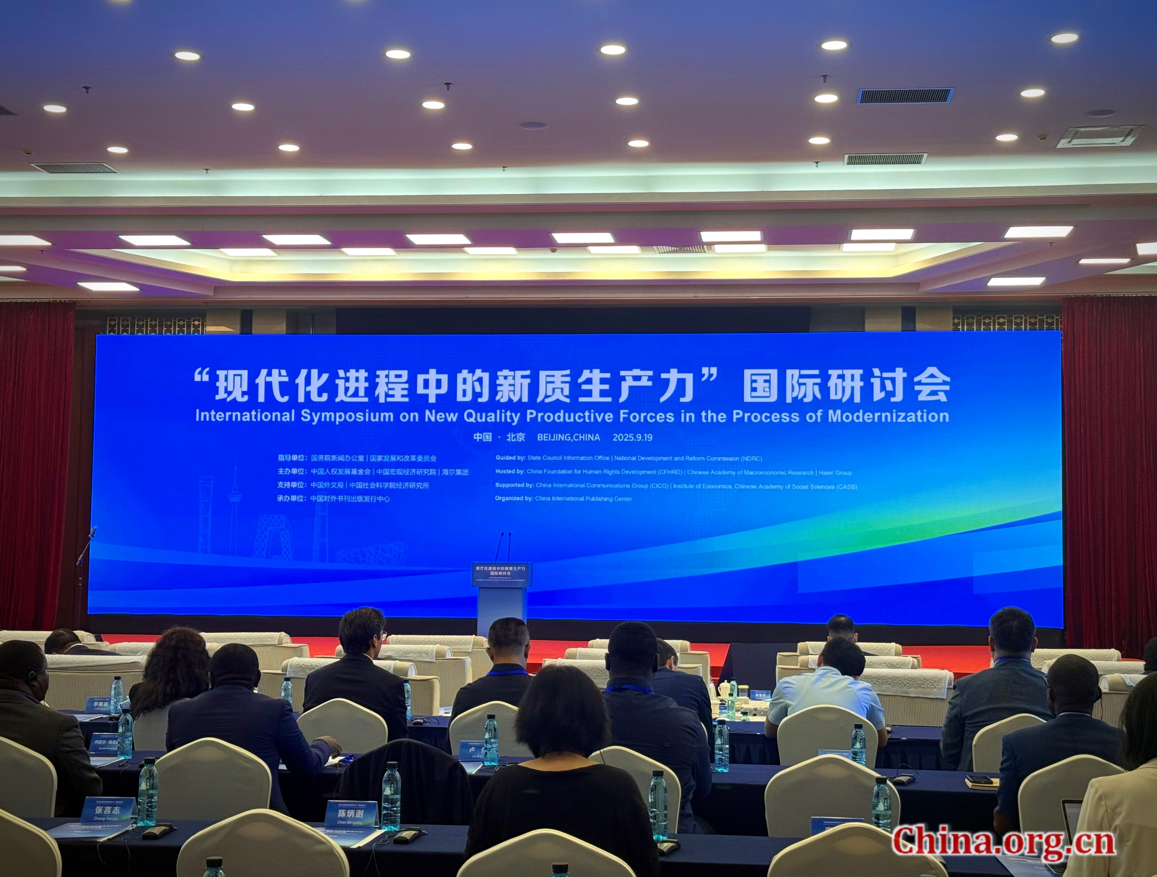 An international symposium on new quality productive forces in the process of modernization was held in Beijing on Friday, drawing over 200 delegates from 37 countries and regions.