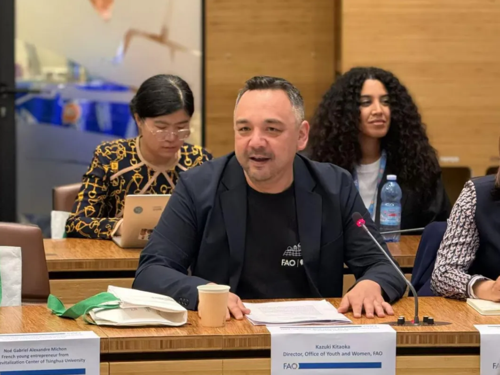 Kazuki Kitaoka, director of the Office of Youth and Women at the Food and Agriculture Organization of the United Nations, delivers remarks in Rome, Oct. 15, 2025. [Photo/CICG]