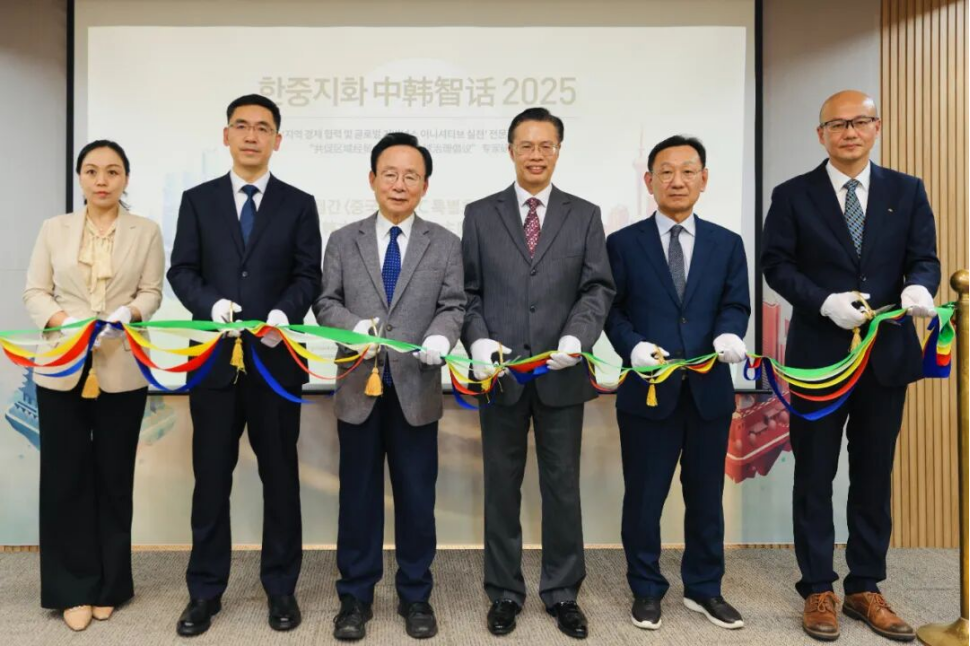 A ribbon-cutting ceremony for the APEC-themed issue launch of "China (Korea)" magazine is held during the China-South Korea intellectual dialogue in Seoul, Oct. 24, 2025. [Photo/CICG]