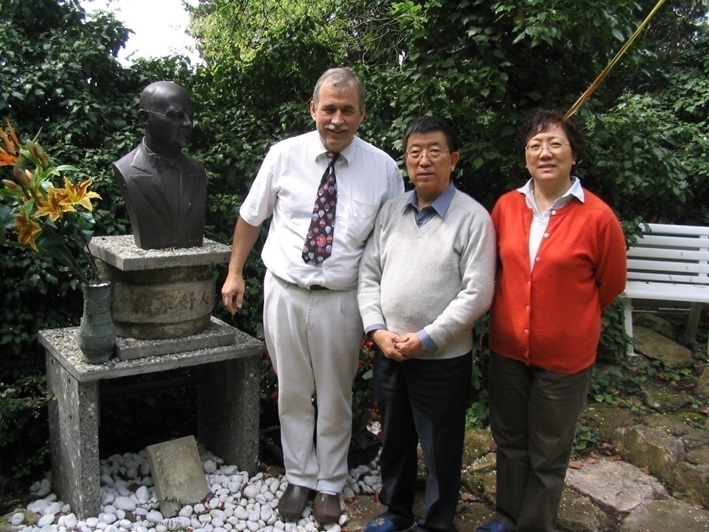 Thomas Rabe accompanies Liu Jianye (C), former deputy director of the Museum of the War of Chinese People's Resistance Against Japanese Aggression, and Liang Yi, professor at Beijing Union University, on a visit to the John Rabe Communication Center in Heidelberg, May 2, 2006. [Photo provided by Thomas Rabe]