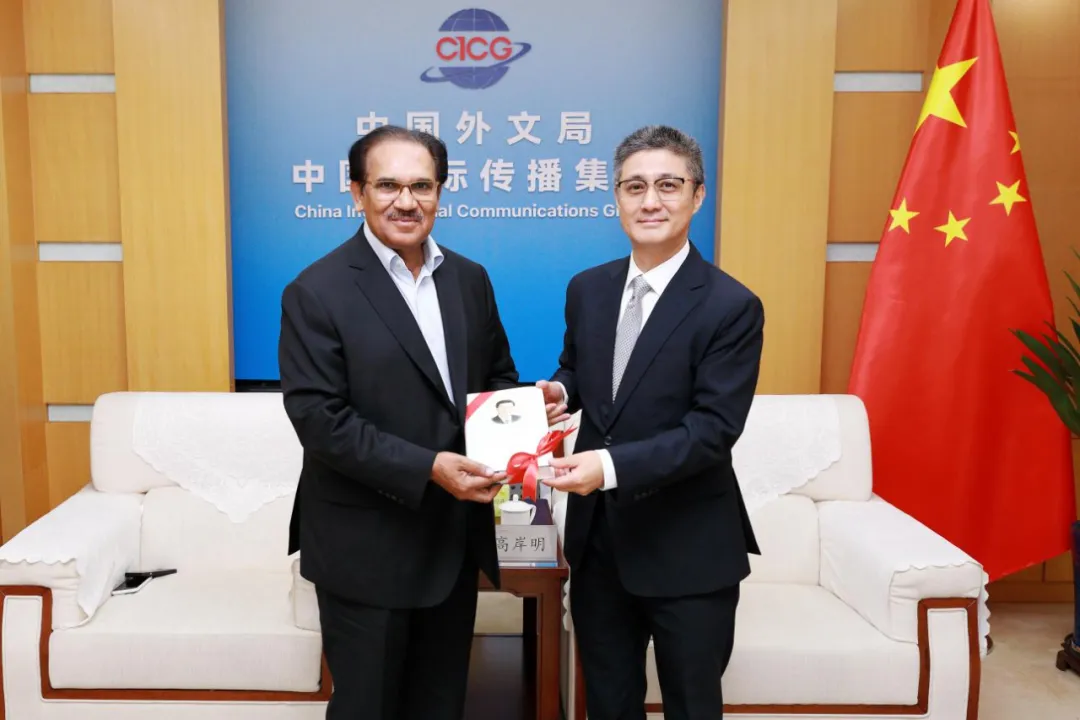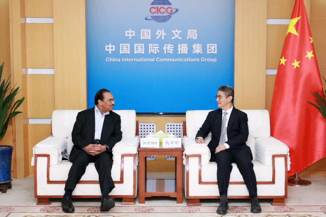 Gao Anming, editor-in-chief of China International Communications Group (CICG), met with Zafar-Ud-Din Mahmood, chairman of the "Understanding China" Forum in Pakistan and a recipient of the Friendship Envoy Award of the second Orchid Awards, in Beijing on Monday.