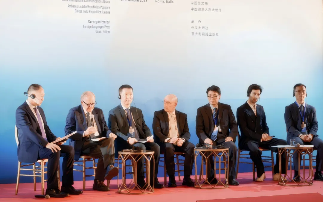 Chinese and Italian experts engage in a discussion on state governance and cooperation, in Rome, Italy, Nov. 13, 2025. [Photo/CICG]