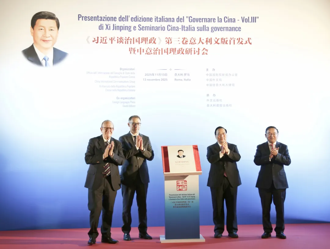 The Italian edition of the third volume of "Xi Jinping: The Governance of China" was unveiled in Rome on Thursday, alongside the China-Italy Symposium on State Governance, drawing about 150 representatives from diverse sectors of both countries.