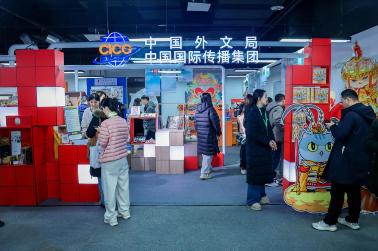 The cultural and creative products exhibition area of China International Communications Group (CICG) at the 38th Beijing Book Fair held in the city's Chaoyang district, Jan. 8, 2026. [Photo/CICG]