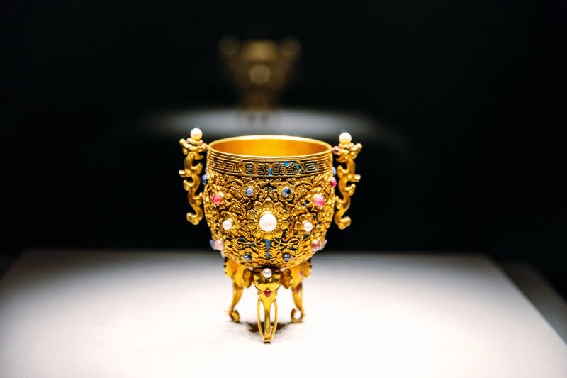 The Golden Chalice of Eternal Stability from the Qing Dynasty. (Photo by Duan Wei/China Pictorial)