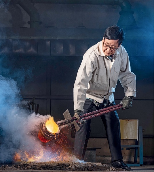 Zhu Bingren is casting boiling molten copper.