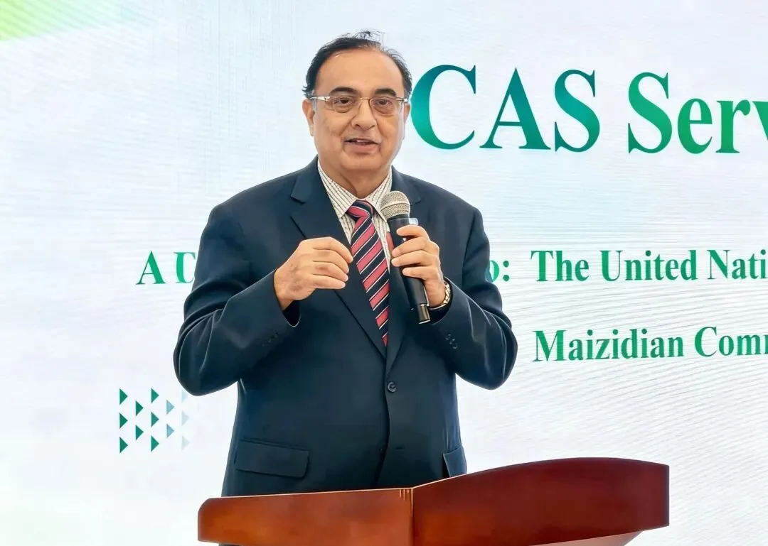 Shahbaz Khan, director and representative to the UNESCO Regional Office for East Asia, delivers a welcome speech at the community cultural event in Maizidian subdistrict, Beijing, March 31, 2026. [Photo/CICG]