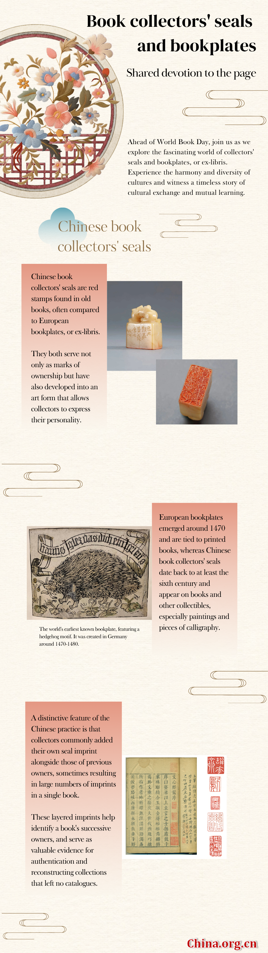 This year, China will launch its first National Reading Week, a weeklong campaign to encourage reading activities nationwide. To mark the event, we explore the "dialogue" between traditional Chinese book collectors' seals and the art of bookplates. While the vermilion seal has long served as the classic mark of scholarly appreciation in China, the bookplate has now emerged alongside it, evolving into a unique fusion of modern design and traditional aesthetics.