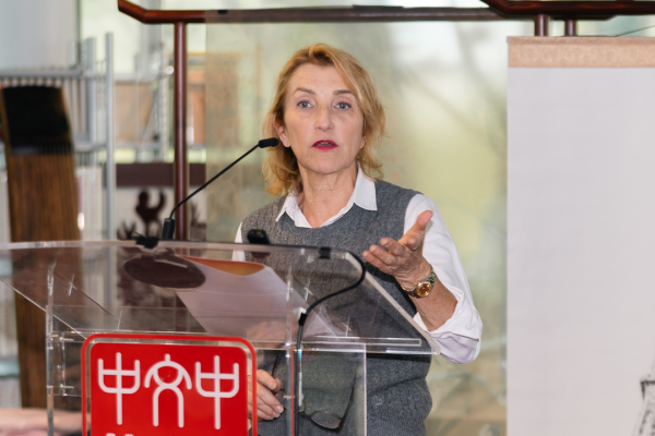 Catherine Ruggeeri, chief supervisor of cultural industries, French Ministry of Culture, speaks at a dialogue on cultural exchange in Paris, France, April 17, 2026. [Photo/CICG]